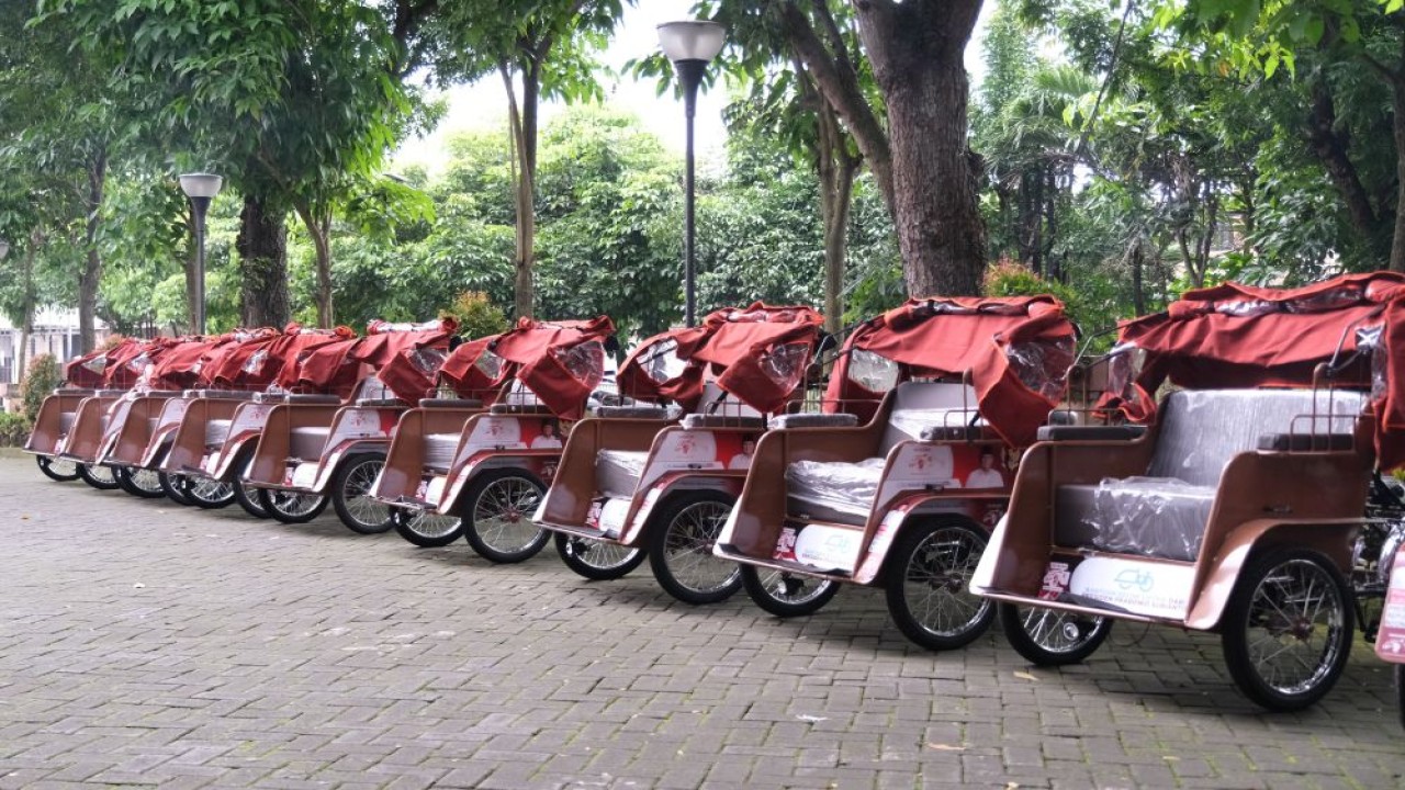 Kini Karsimo bisa sedikit bernapas lega. Dia baru saja menerima becak listrik gratis yang diharapkan dapat mempermudahnya mencari nafkah. Tanpa perlu lagi mengayuh, dia cukup menyalakan mesin untuk menggerakkan becaknya.
