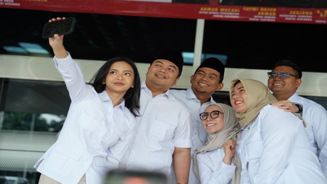 Ketua Panitia HUT ke-18 Partai Gerindra, Kawendra Lukistian berfoto bersama para kader Partai Gerindra (Istimewa)
