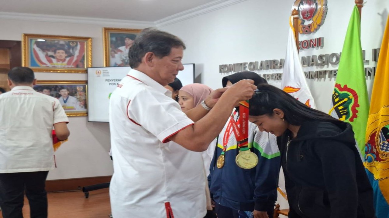 Penyerahan pengalihan medali juara kickboxing PON 2024 dilakukan secara resmi di Gedung KONI Pusat, Gelora Bung Karno, Jakarta, Selasa (3/2/2026). Medali diserahkan langsung oleh Sekretaris Jenderal KONI Pusat, Tb. Lukman Djajadikusuma, sebagai tindak lanjut atas putusan Dewan Hakim PB PON dan telah ditetapkan oleh Badan Arbitrase Olahraga Indonesia (BAORI).