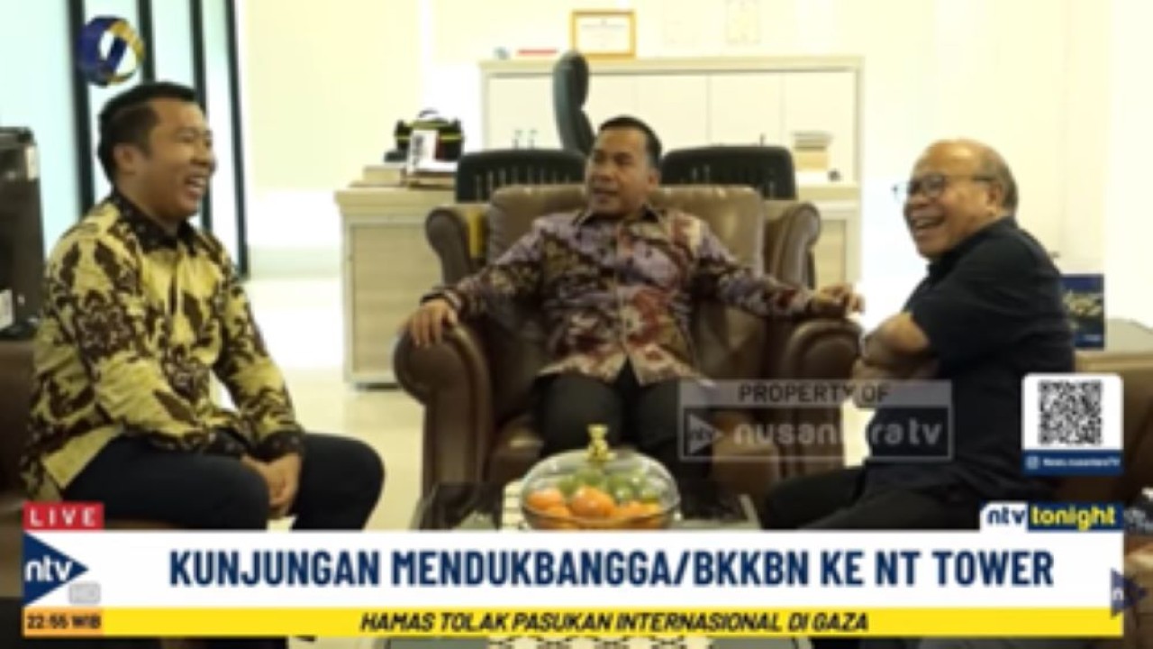 Setiba di lobi NT tower, Menteri Kependudukan dan Pembangunan Keluarga yang juga Kepala BKKBN Wihaji disambut oleh jajaran pimpinan Nusantara TV di antaranya Presiden Direktur Don Bosco Selamun, Direktur Nusantara TV Randy Tampubolon, serta Pemimpin Redaksi Abraham Silaban.