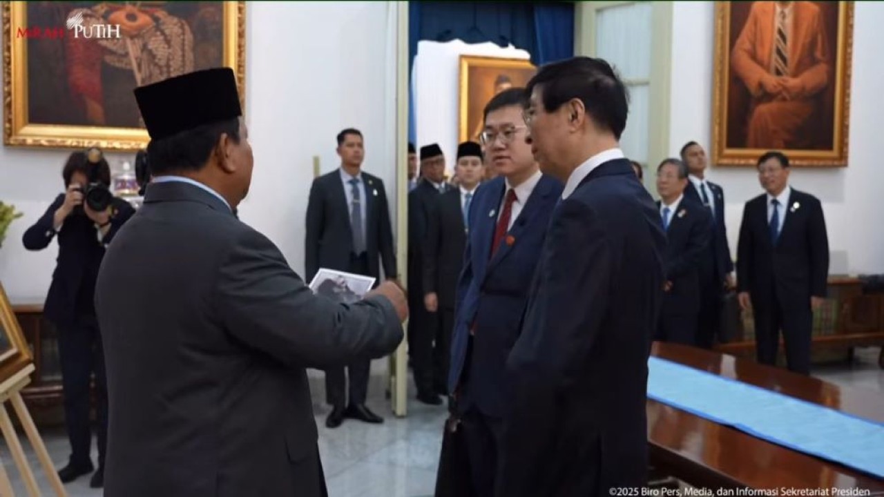 Nusantaratv.com-Presiden Prabowo Subianto dan Ketua Majelis Permusyawaratan Rakyat China, Wang Huning, membicarakan tentang Rio, anak panda yang lahir di Indonesia. Percakapan itu berlangsung di sela-sela kunjungan Wang Huning ke Istana Merdeka, Jakarta, Jakarta, Kamis, 4 Desember 2025.